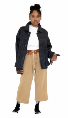 we make streetwear using African fabric like Ankara wax and mud cloth mix with contemporary knits and denim