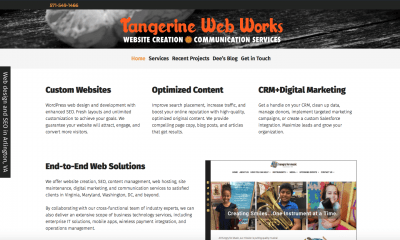 END-TO-END WEB SOLUTIONS We offer website creation, SEO, content management, web hosting, site maintenance, digital marketing, and communication services to satisfied clients in Virginia, Maryland, Washington, DC, and beyond. By collaborating with our cross-functional team of industry experts, we can also deliver an extensive scope of business technology services, including enterprise IT solutions, mobile apps, wireless payment integration, and operations management. • Tangerine Web Works will help your organization thrive online. • We create unique solutions with incomparable integrity and commitment. • No matter your budget, you'll see a substantial ROI. • Contact us for all of your web and communications needs. Call Now: 571-549-1466